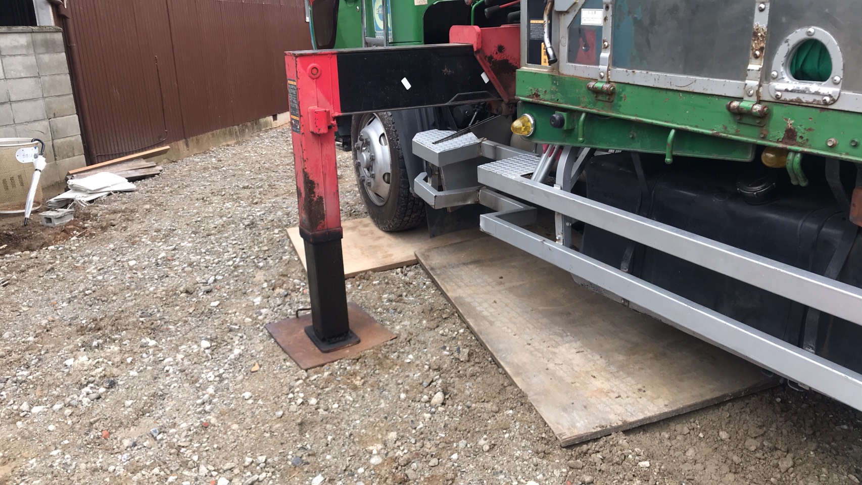 ②引上げ地ではアウトリガー(ユニックの足のこと)安全対策